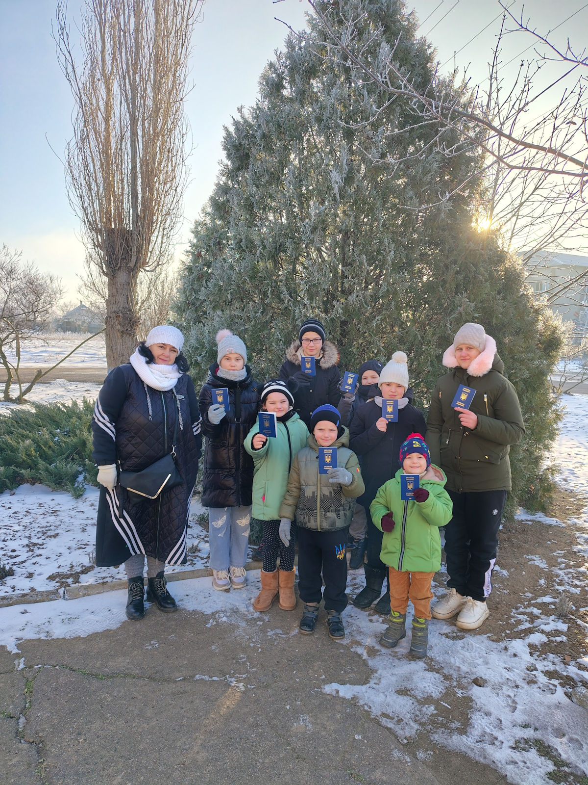 З сім’єю пані Тетяни ми познайомились під час роботи мобільної групи у с.Іванівка Куцурубської громади Миколаївської області. Тетяна звернулась за послугою оформлення паспортів громадянина України для виїзду за кордон для своїх десятьох дітей. Вся команда мобільної групи легко налагодила контакт із дітьми, знайшли з ними спільну мову та вибудували індивідуальний підхід до кожної дитини, аби процедура оформлення паспортів стала для кожного комфортною і легкою. Особливо команду вразило те, з якою любов’ю в очах пані Тетяна дивилась на кожну дитину, а їхнє тепле і дружнє спілкування один з одним не залишило у міграційників жодного сумніву, що в сім’ї пані Тетяни панує любов, турбота і взаємна підтримка.