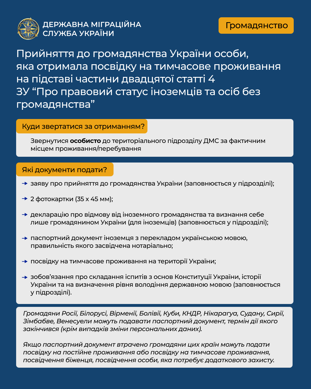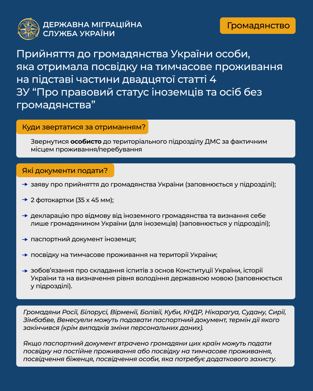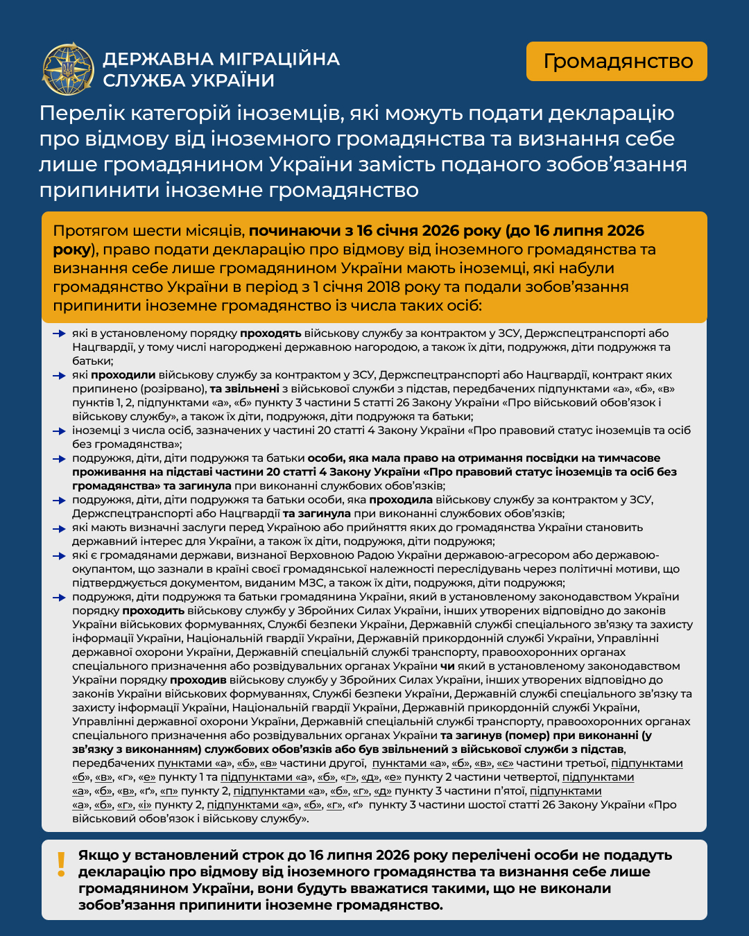 - aA + З 16 січня 2026 року в Україні діють нові правила набуття та збереження громадянства Що саме змінилося, кого це стосується та на що варто звернути увагу - зібрали коротко й наочно в інфографіці