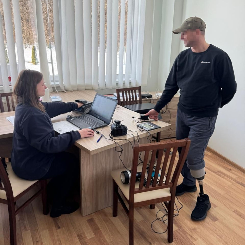 Завдяки мобільній станції адміністративні послуги надаються Захисникам, які через стан здоров’я не мають можливості особисто звернутися до міграційної служби. Отже, безпосередньо у реабілітаційному центрі воїнам спочатку оформляють документи, а у визначений час вручають готові паспорти. Процедура швидка, а головне у тому, що це найзручніше для наших воїнів.