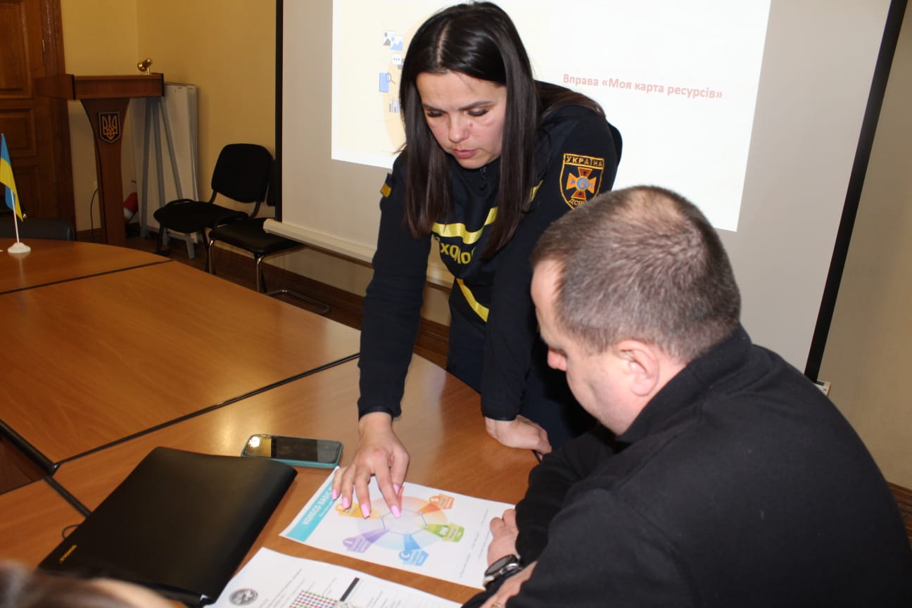 Інтерактивне навчання провела Ірина Мостович - кризова психологиня, психологиня Міжрегіонального центру гуманітарного розмінування та швидкого реагування ДСНС України.