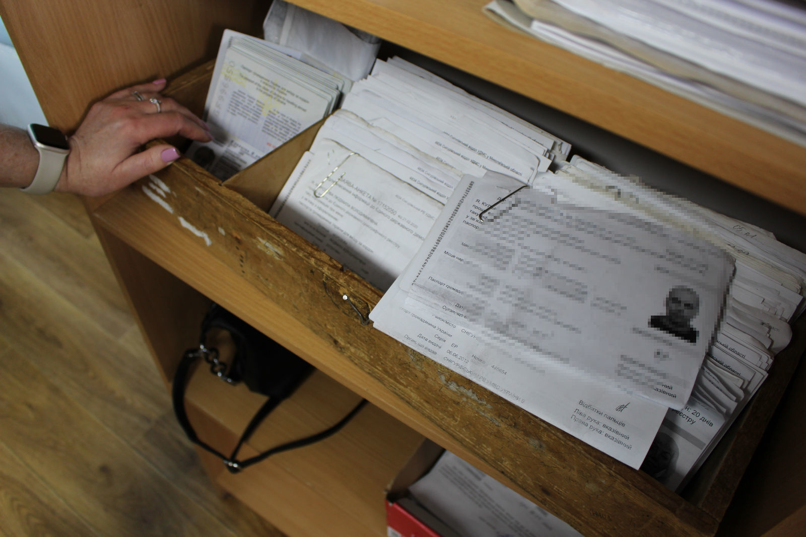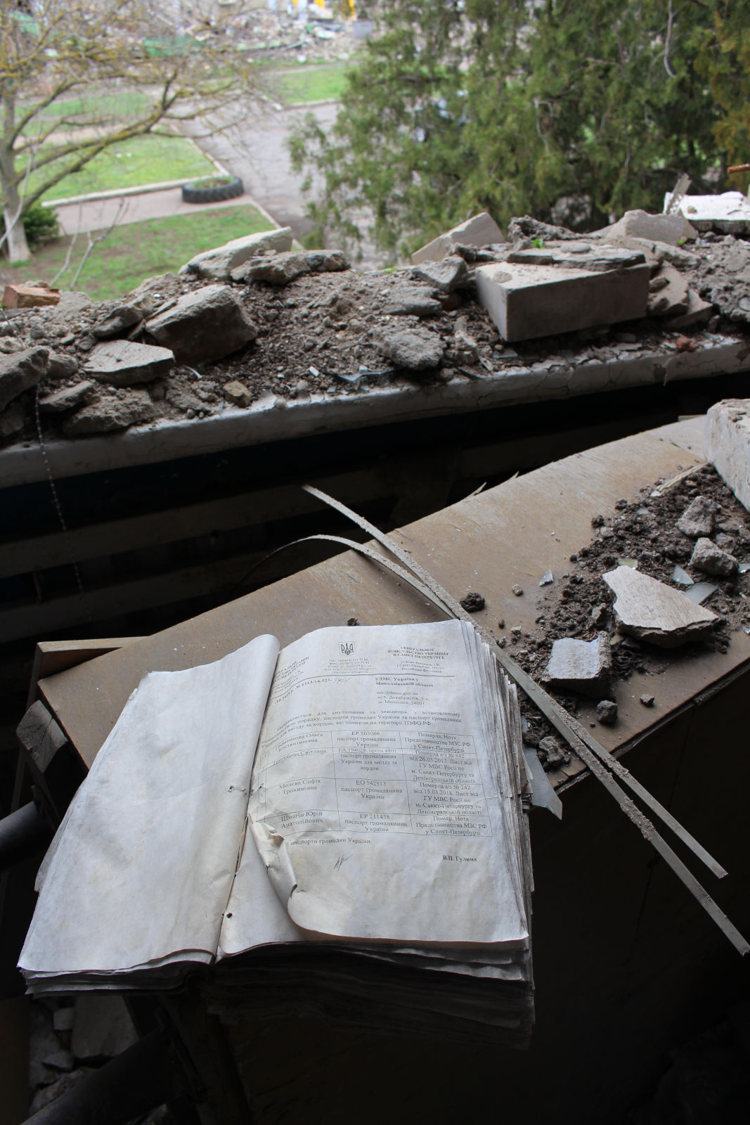 «Ми паспорти завжди зберігали в дерев’яному ящичку. Як зараз пам’ятаю: на момент останнього робочого дня ID паспортів було 40 шт., а закордонних паспортів 45 шт. І коли я опинився в своєму зруйнованому кабінеті, то під шаром піску і штукатурки побачив куточок дуже знайомого дерев’яного ящичка. На диво, жоден паспорт не зник. Я більше скажу, після деокупації, половину паспортів ми довидавали, а деякі і досі є.»